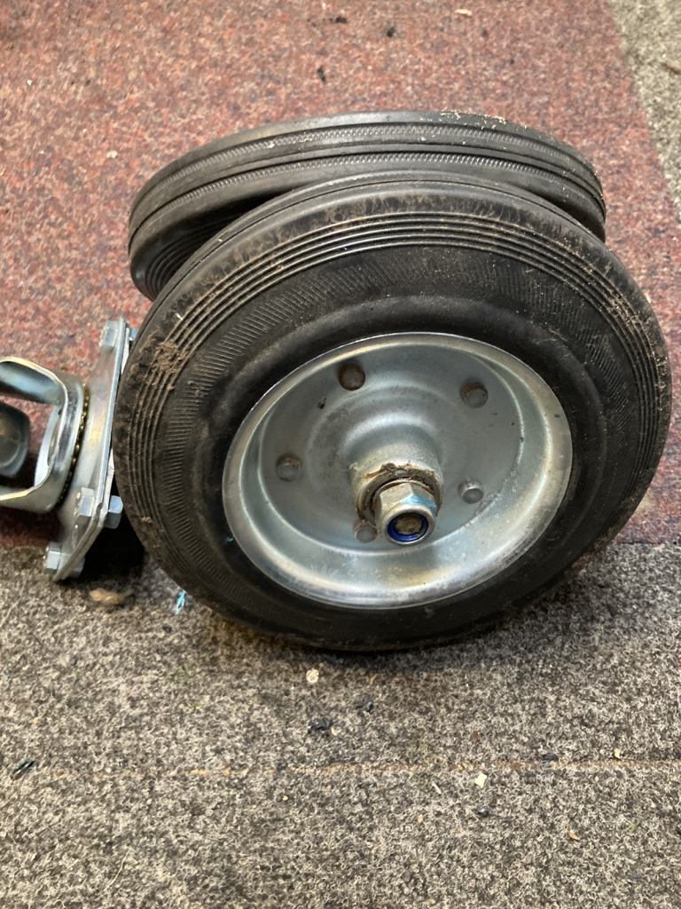 Heavy duty wheels 2 fixed and 2 caster type nearly new only weeks old in excellent condition condition