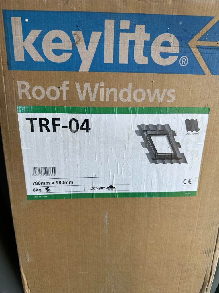 Posting for 9+ yearsKeylite Velux Style Roof Window Size 04, 780mm x 980mm, Never fitted. Comes with TRF-04 Flashing Kit