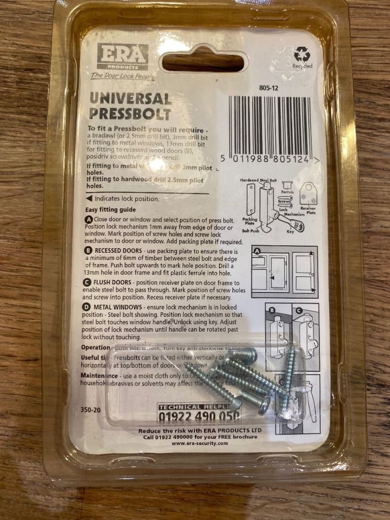 ERA Universal Press bolt white 805-12 More available