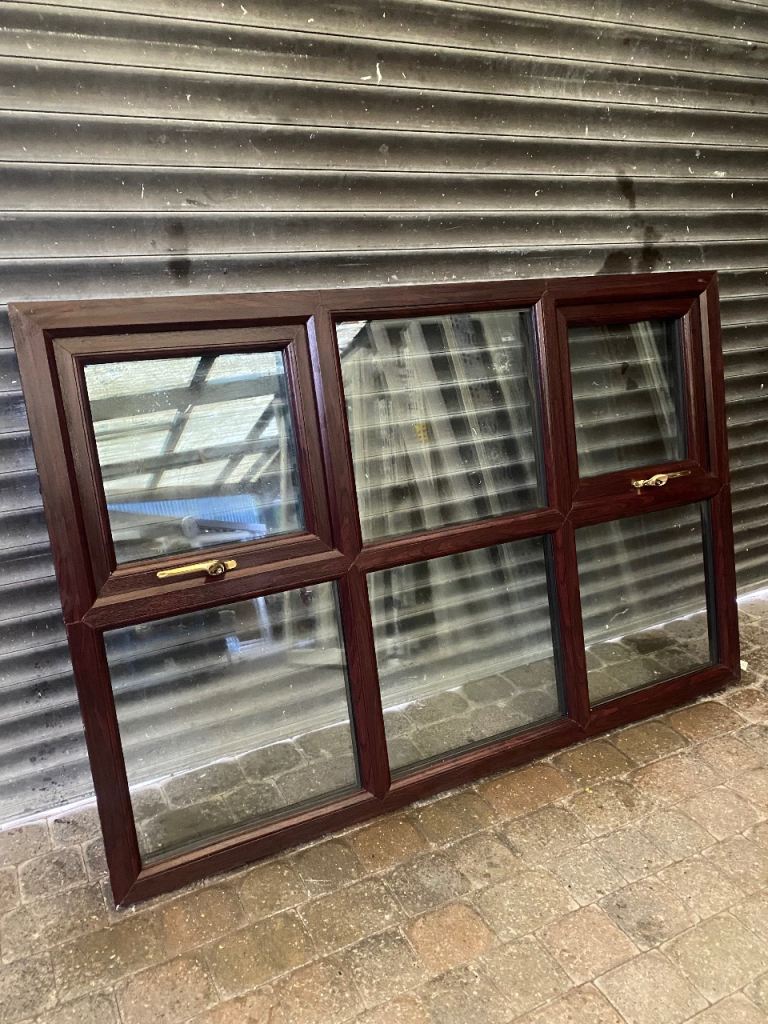 Hardly used in excellent condition upvc brown/Rosewood window all in good working condition comes with frame glass gold handles not your cheap keys but are open it’s rosewood on both sides has 2 top openers nice solid window bargain £120