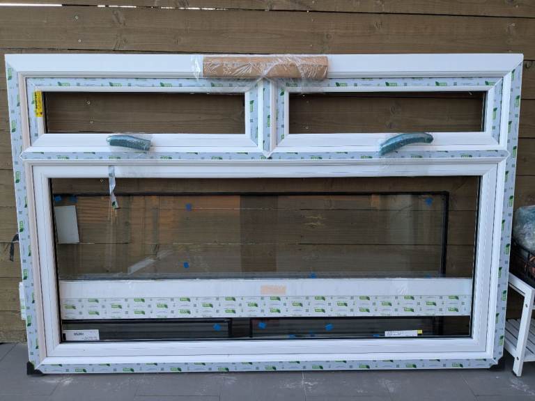 Brand new upvc white window all in good working condition comes with frame sill frosted glass vents chrome handle 1 keys it’s a side opener it’s white on both sides nice solid window £75