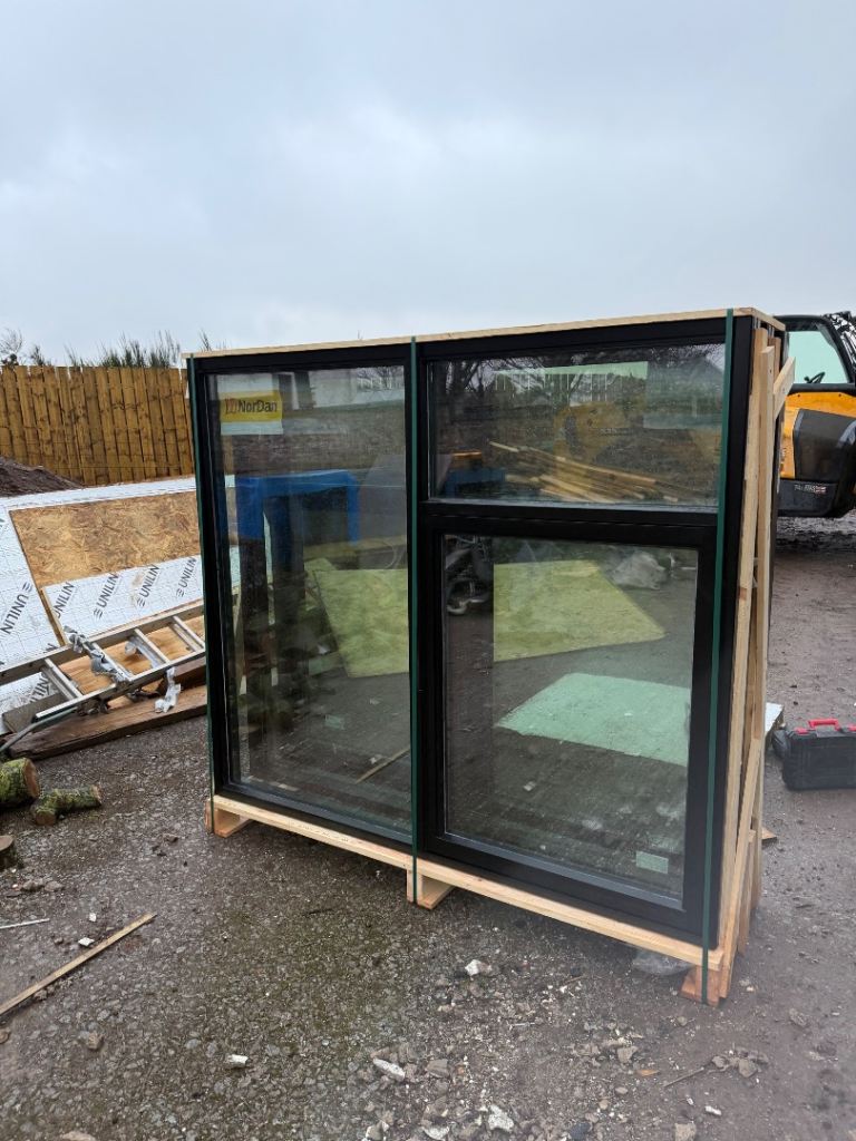 High quality triple glazed black timber windows with Ali-clad on exterior face . Ordered the wrong size so not required . Sold separately for £600 each or 3 for £1500. Half of what they were bought for