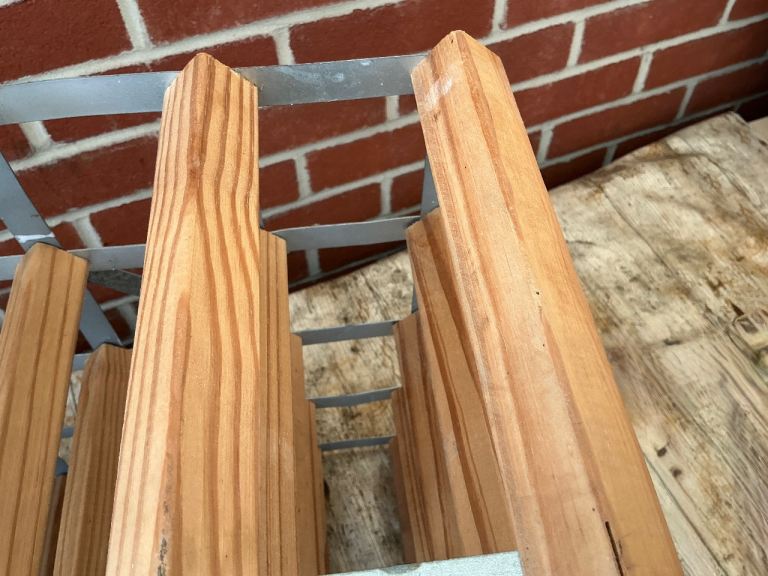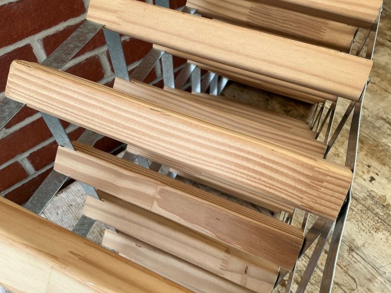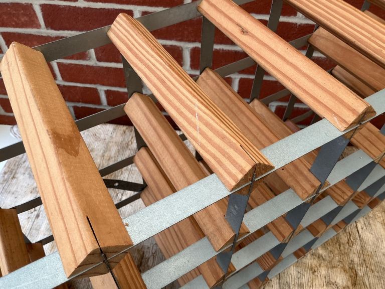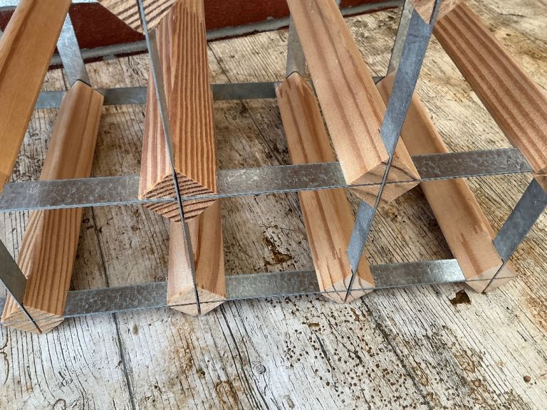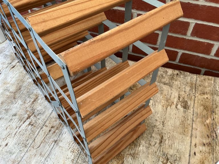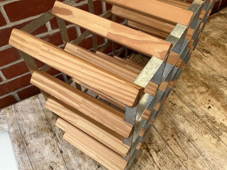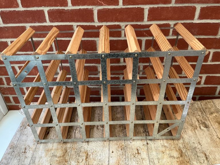 24-30 bottle pine and galvanised metal wine rack.