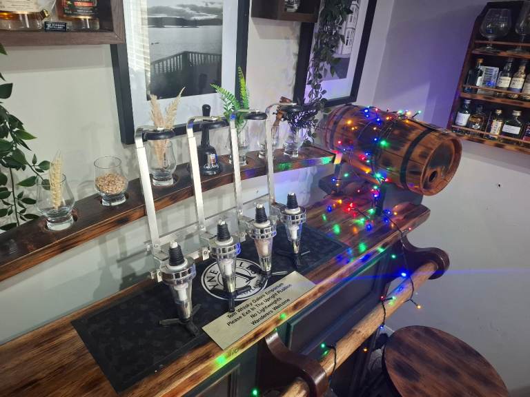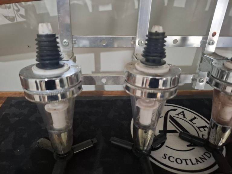 Posting for under a month4 Bottle Optic Chrome Metal Dispensor Home Bar Man Cave