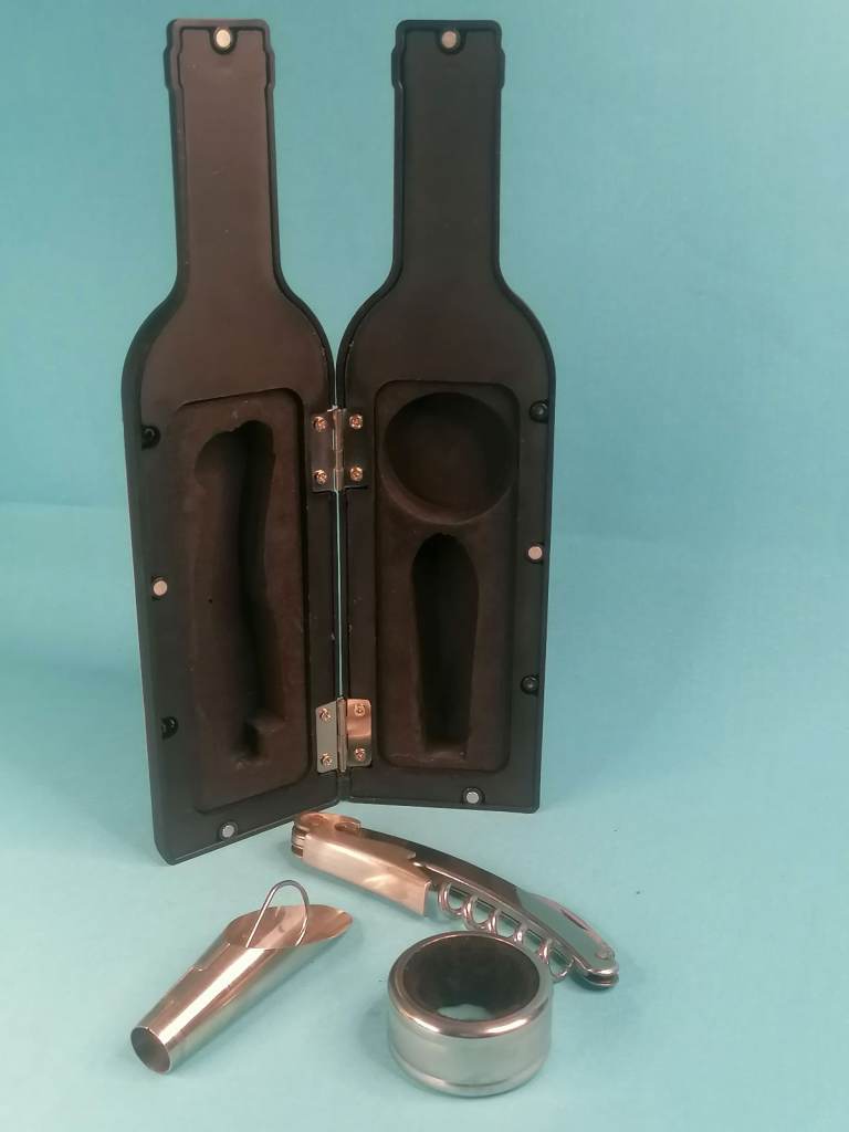 9-inch Wine Accessories 3 Pieces Gift Set In Form Of A Bottle. As seen.