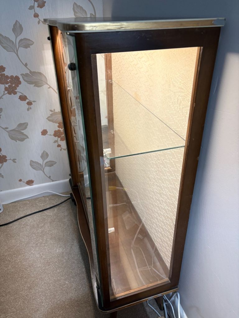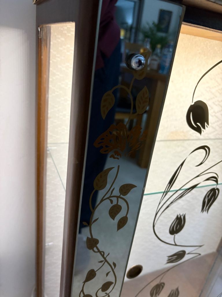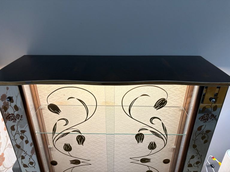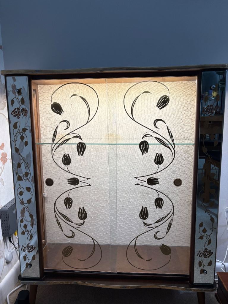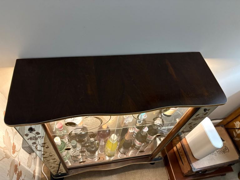 Art Deco style glass drinks cabinet, with mains electricity lighting.