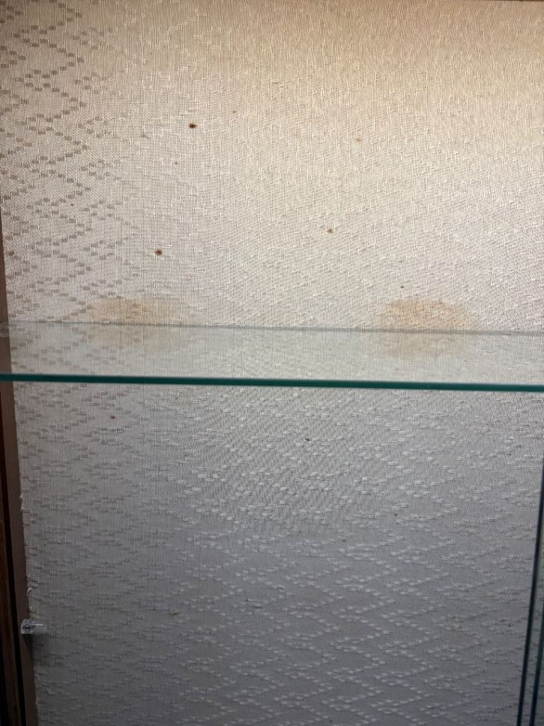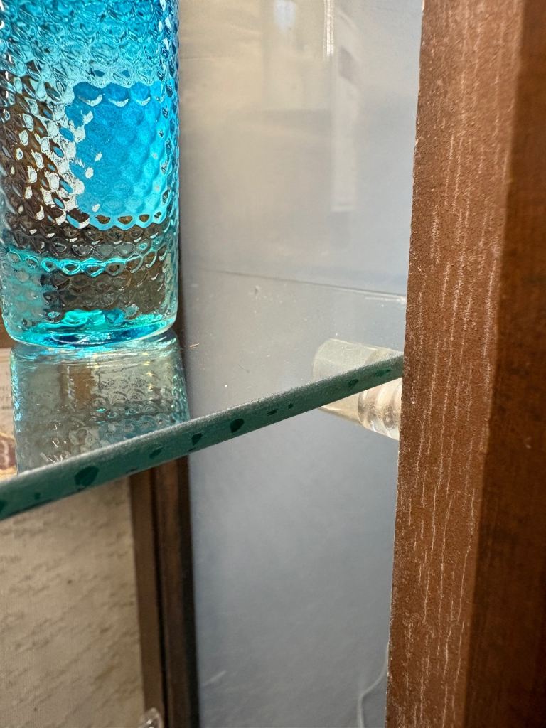 There are two glass shelves, one is sat in the bottom in these pictures but can be positioned higher and photos show what the shelves sit on.