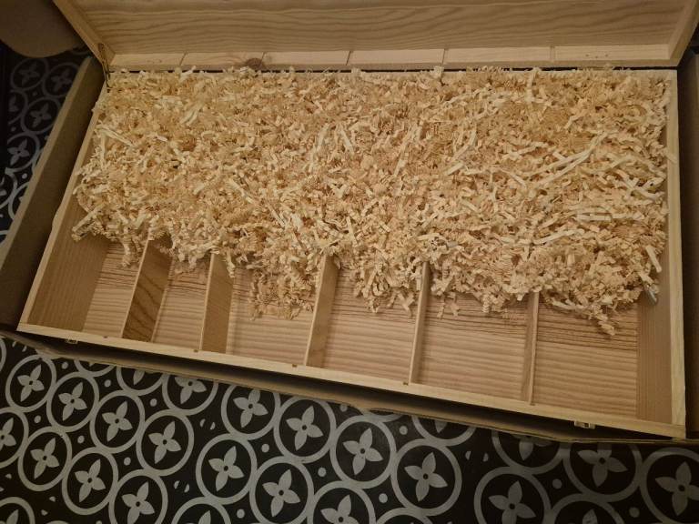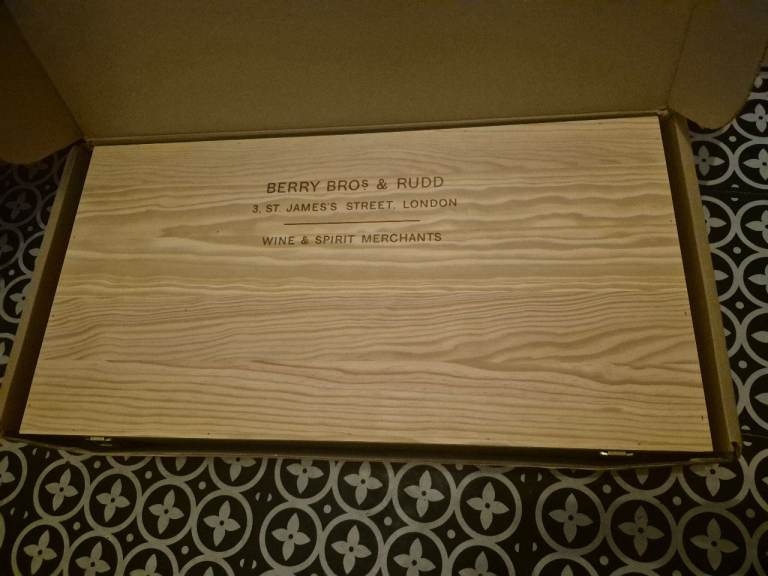 This is a beautiful wooden wine box which holds 6 bottles. Its really nice and well made by berry bros and rudd. Has a nice safety catch on it and barrel engraving.