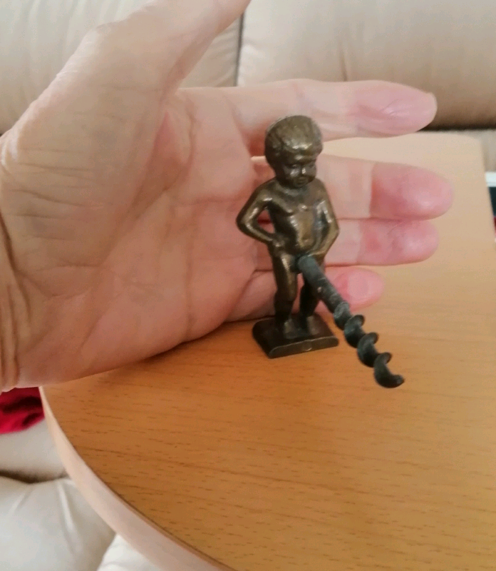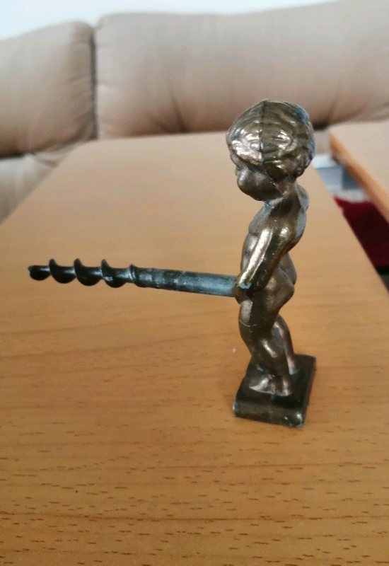 Little Boy Corkscrew, bottle opener 7cm tall. Brass figure, metal screw. Good condition, old but a novelty figurine and practical device.