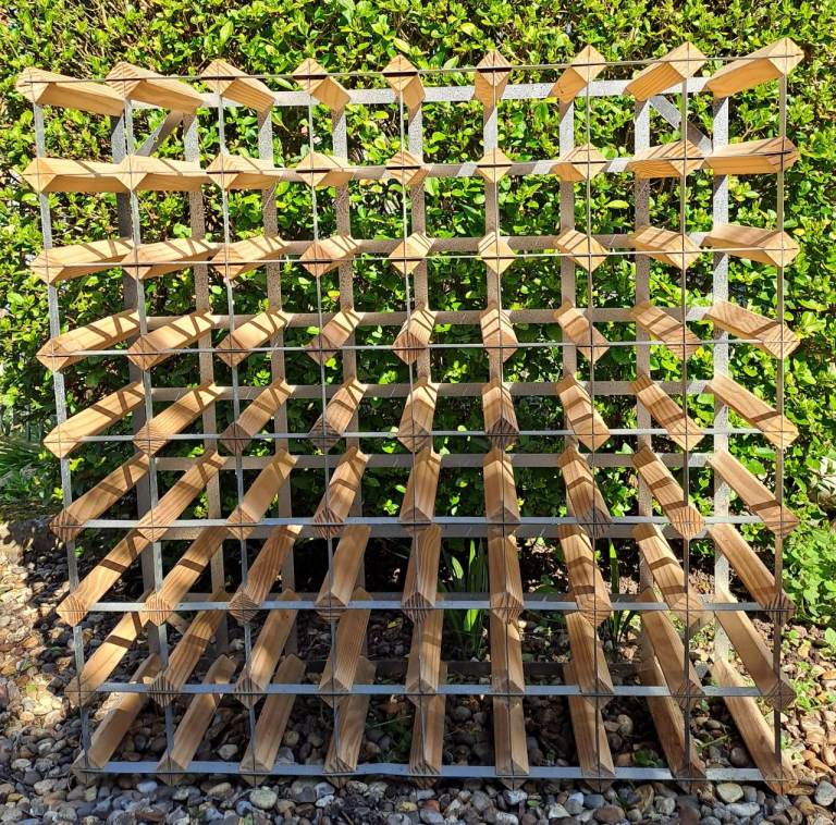 Substantial natural pine & galvanised steel wine rack, holds 72 bottles. 32 inches square x 9 inches deep. Also have 42 bottle one for sale. Collection from a smoke free home in Swardeston.