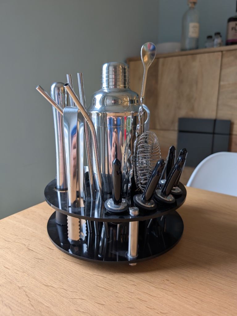 18-piece cocktail set made for home bartending. Items are made with a sturdy stainless steel. Set includes: