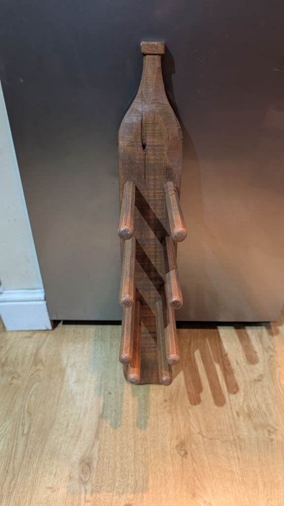 Add a touch of rustic charm to your kitchen or dining room with this stylish handcrafted wooden wine rack. Designed in the shape of a wine bottle, it features four sturdy wooden arms to securely hold and display your favourite wine bottles. Made from solid wood with a lovely natural grain, it has a warm, farmhouse look that suits both modern and traditional interiors.
