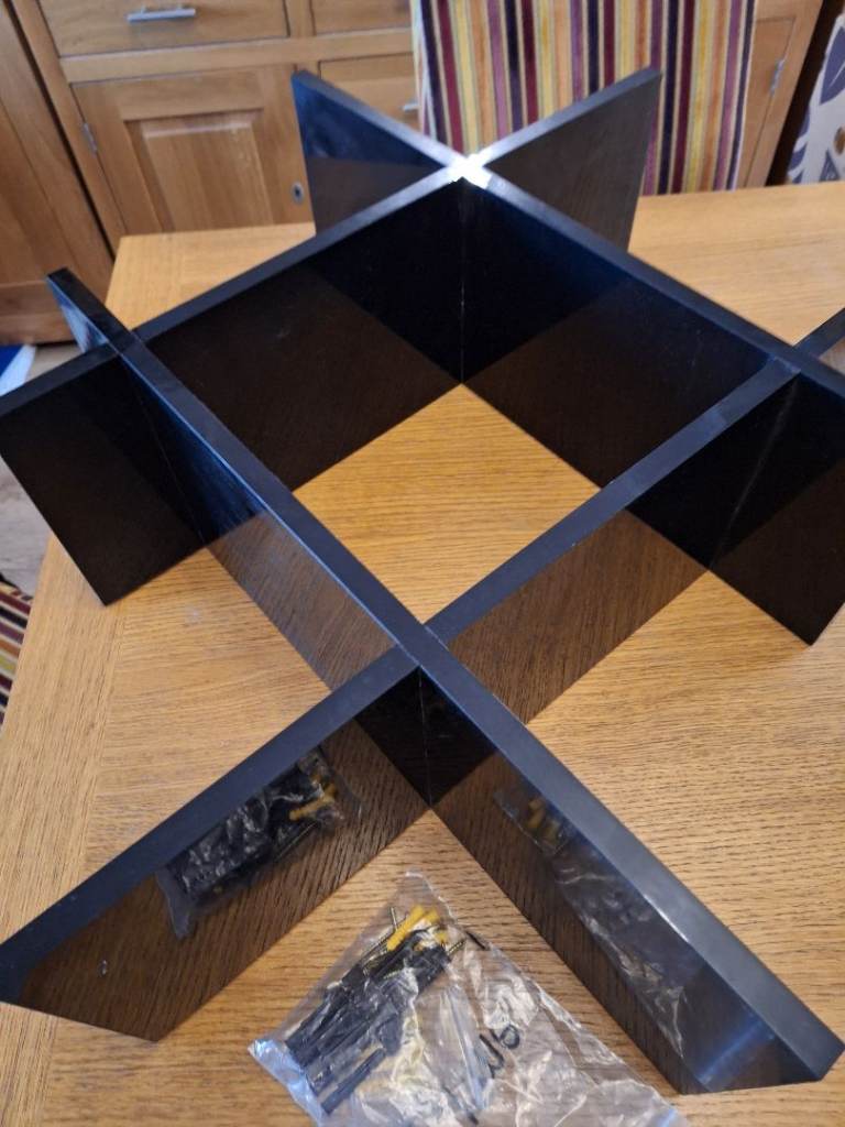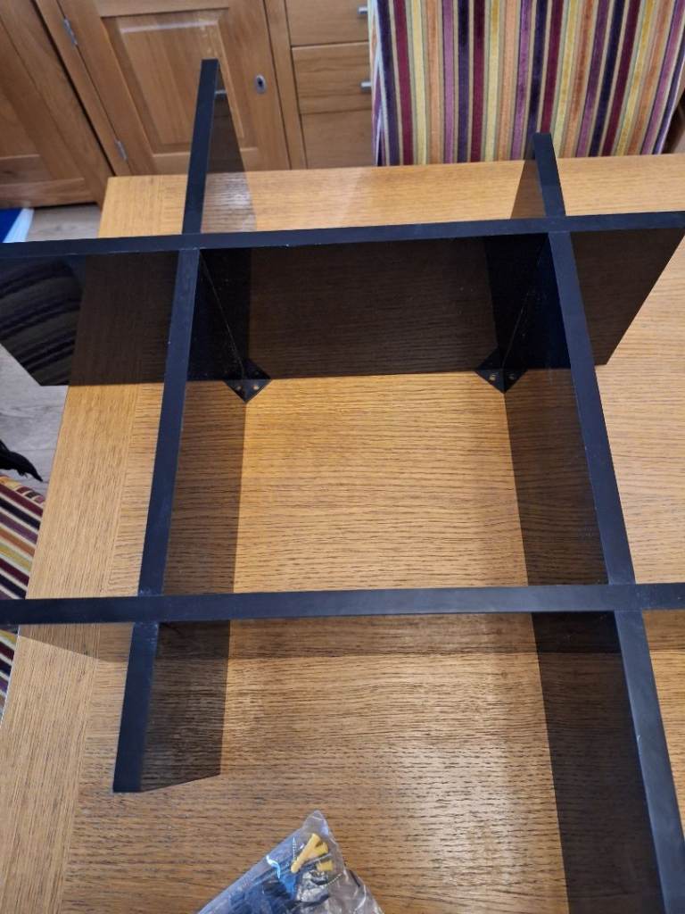 Black shiny shelving unit screw to wall fitting square or diagonally
