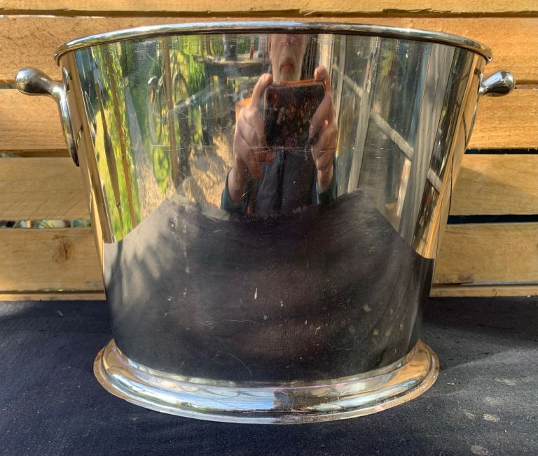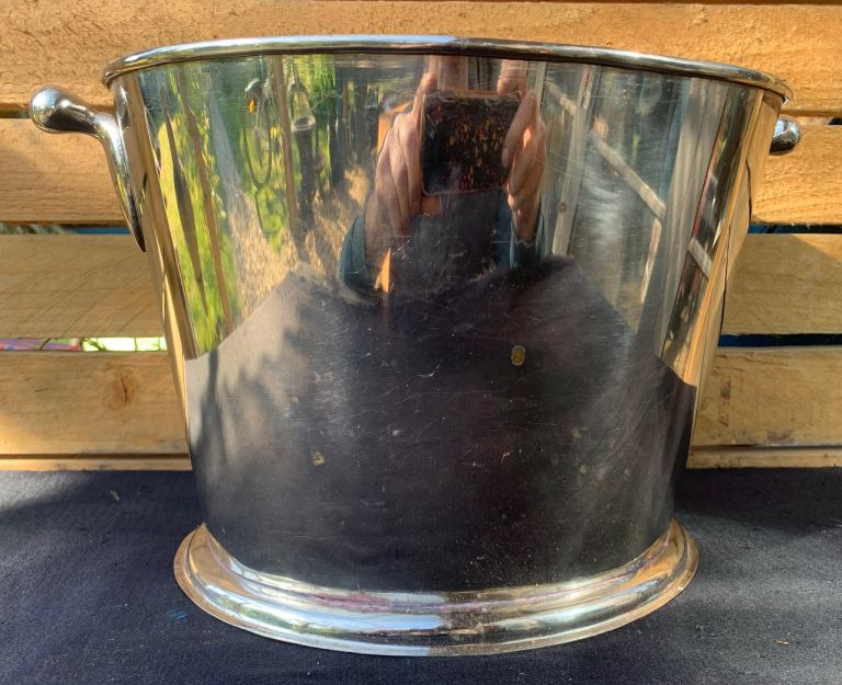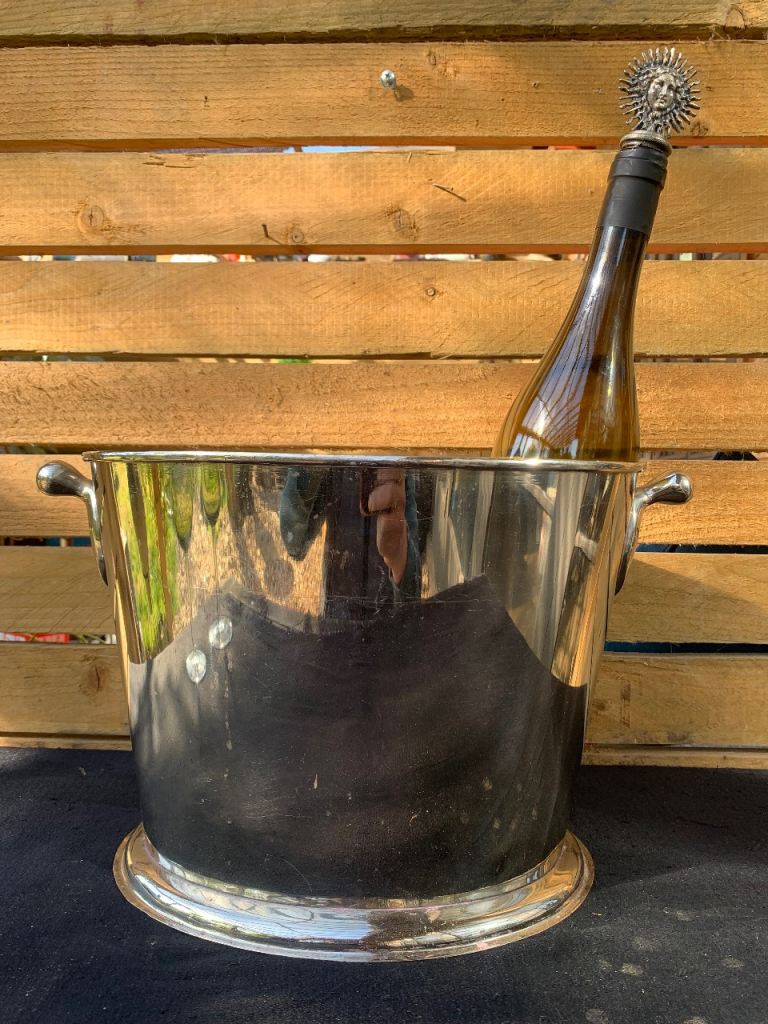 Vintage Art Deco Nickel Chrome Plated Double Bottle Cocktail Ice Bucket c1930’s