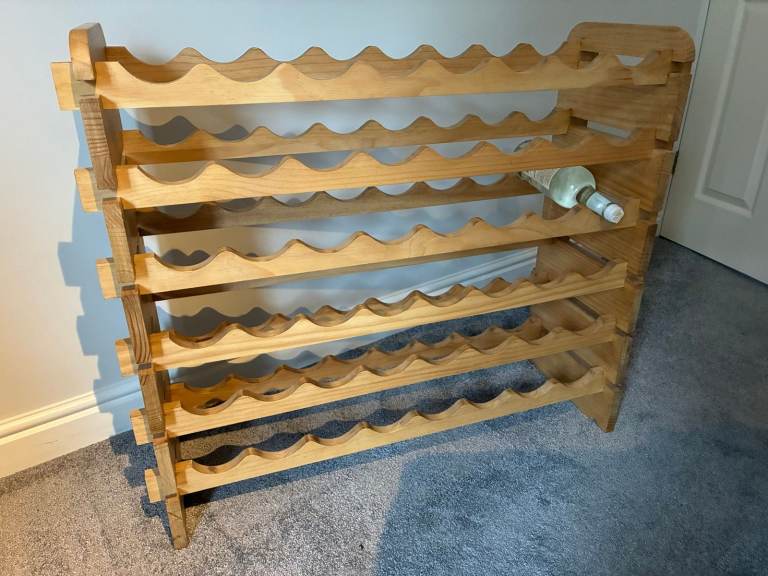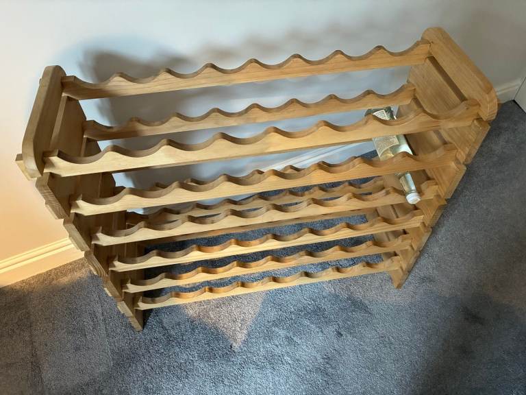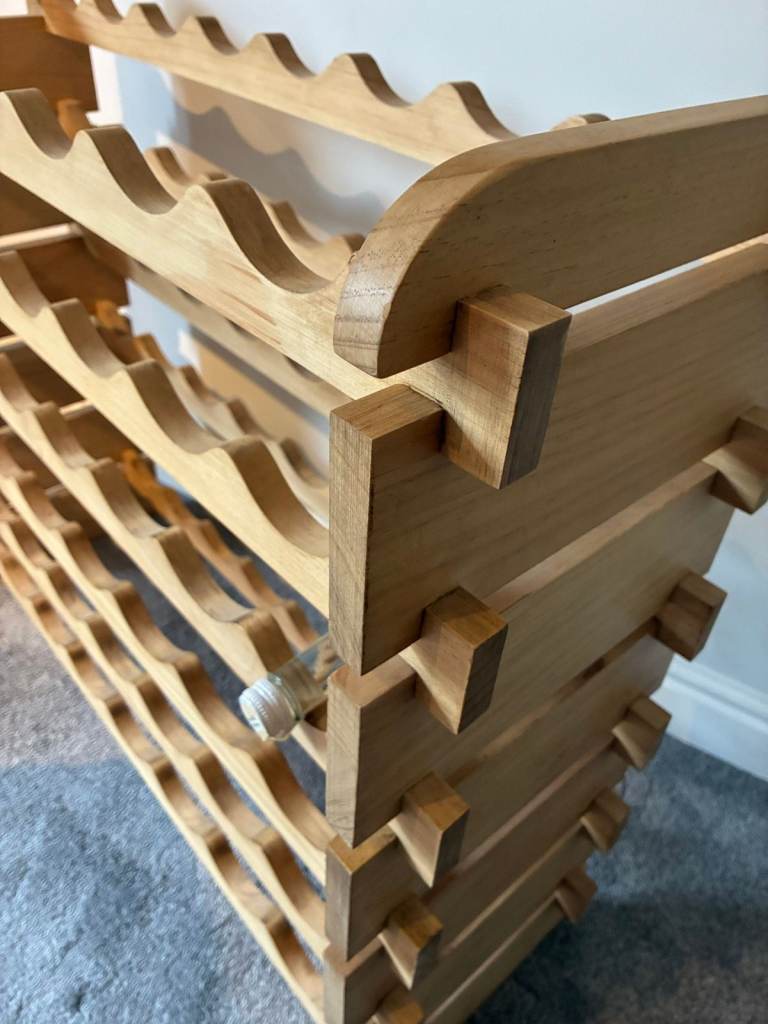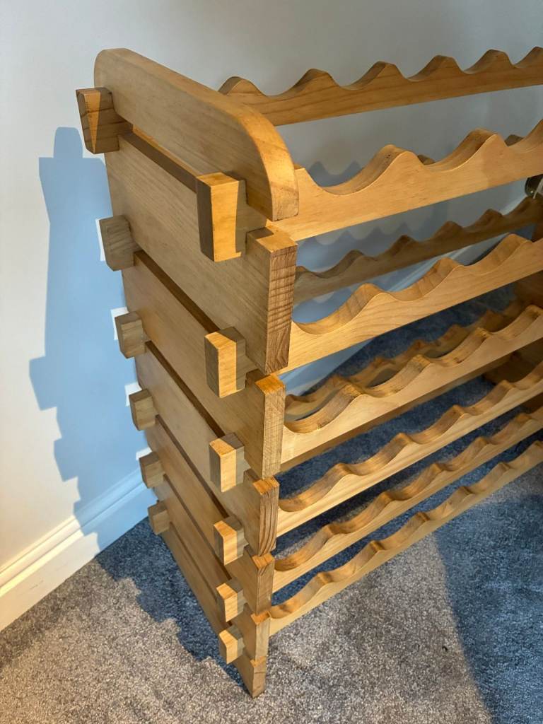 Solid wood wine rack, has been carefully sanded and then finished in wood wax to protect.