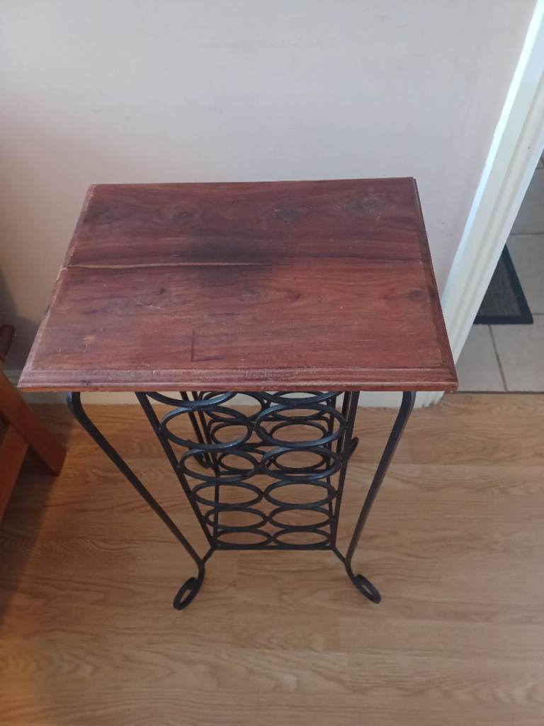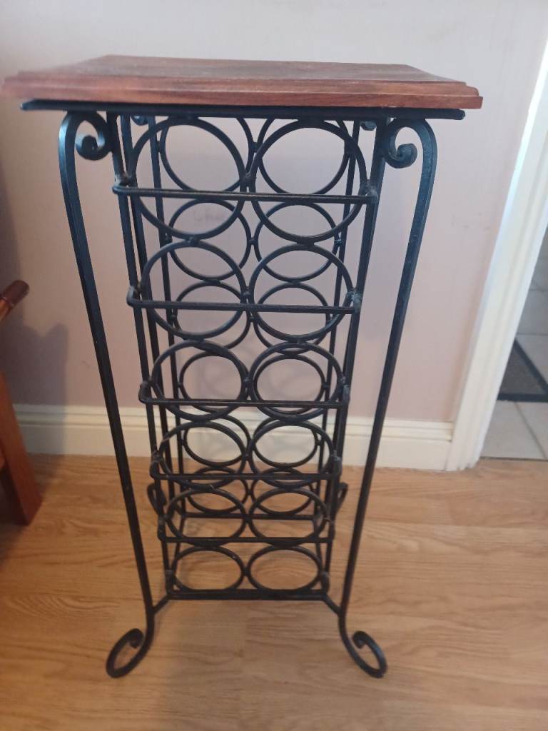 Posting for 4+ yearsWine wood iron rack display. 12 bottles holds.