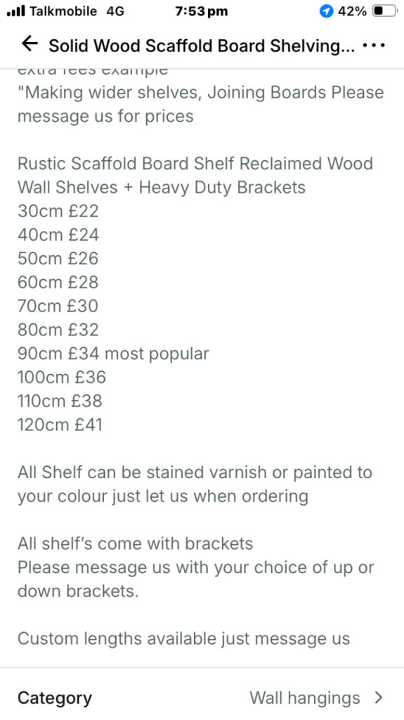 Add a touch of character to your home with these handmade rustic shelves, crafted from genuine reclaimed scaffolding boards. Each piece is carefully sanded, treated, and finished to highlight the natural grain and unique imperfections of the wood—no two shelves are the same.