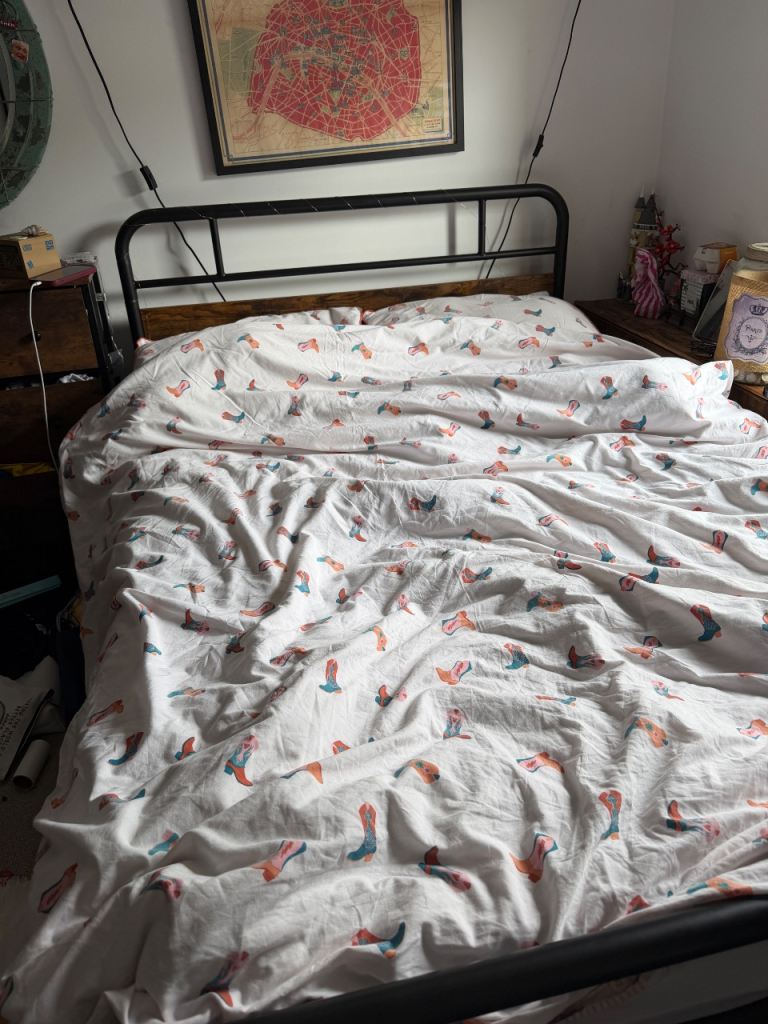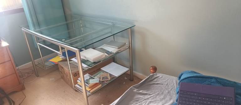 The wardrobes and bed have been dismantled ready for collecting, drawers in one piece.