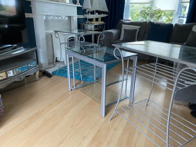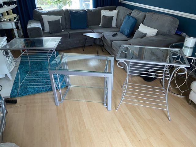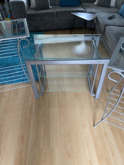 Metal and glass side tables and TV unit