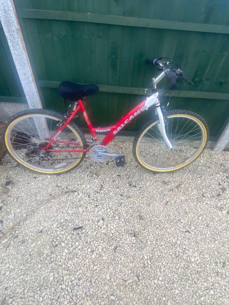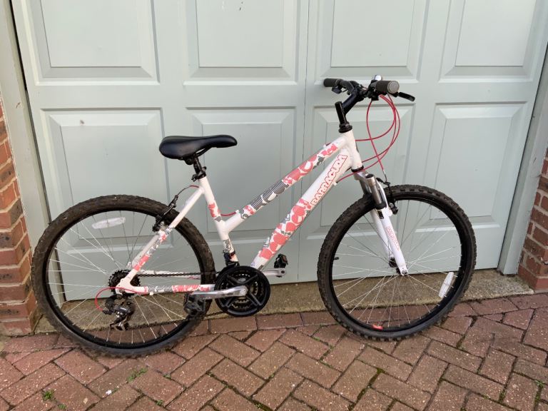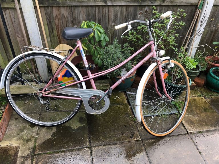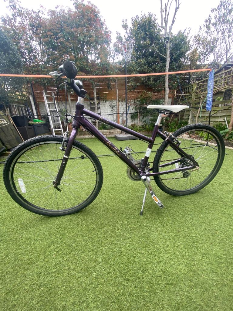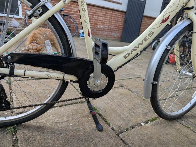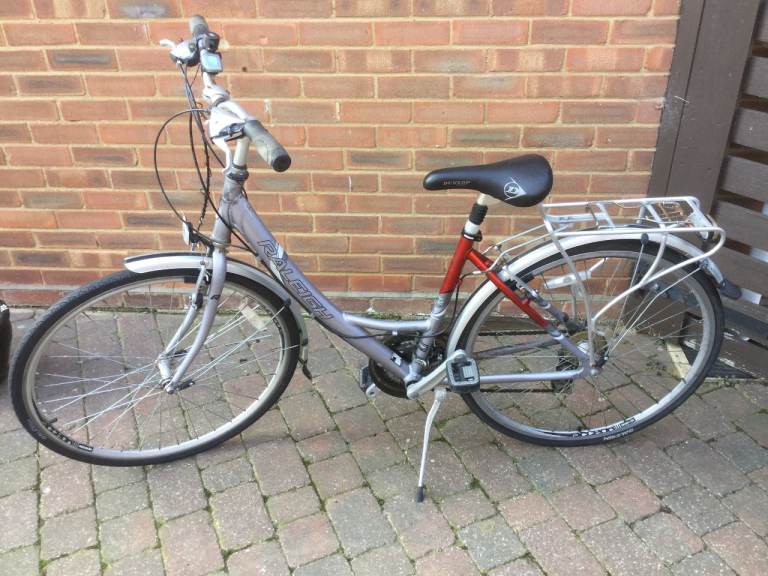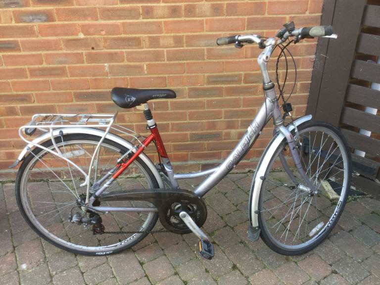 ladies Raleigh metro lx bike 28 inch wheels side stand rear carrier 21 speed gears silver and red buyer collects