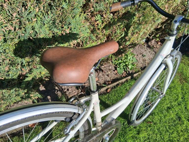 DUTCH STYLE STEP THROUGH BIKE IN GOOD ORDER, WORKS AS IT SHOULD WITH ONLY ODD VERY MINOR BLEMISHES . LIGHT USE AS SEEN BY CONTITON OF THE PEDALS . A LOVEY CYCLE TO RIDE. I HAVE THE BASKET MOUNT TO BE FITTED.
