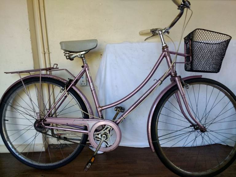 A women’s bike with a large, 21 inch, frame, 26 inch wheels and 3 speed hub gears, complete with mudguards, front basket, rear luggage rack and a prop-stand. All fully working. Meadows area of Nottingham.
