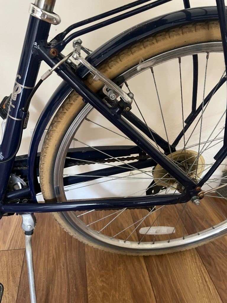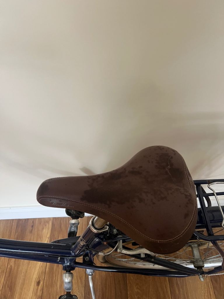 A wonderful bike, it has just been serviced after a period of not being used - sadly, it’s been sat outside so there is some rust on the bell and water damage on the leather seat but otherwise drives well and a general stunner