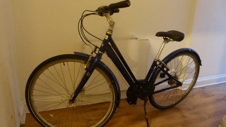 This elegant bike is a 7 speed one (plenty for London) to easily go up and down town. Rides very smoothly and the brakes are very good. Solid british brand, Raleigh from Nottingham.