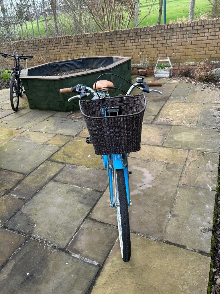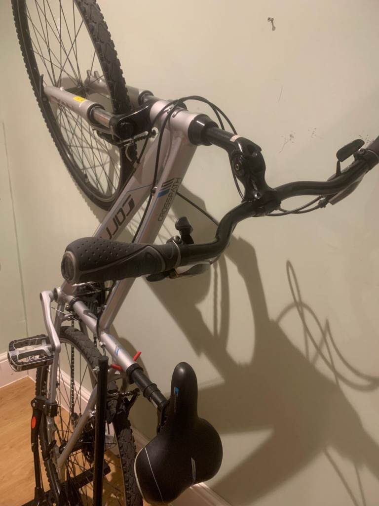 A 'comfort' bike with a 47cm aluminium frame, 26" wheels, Shimano gears, Suspension to front and seat post