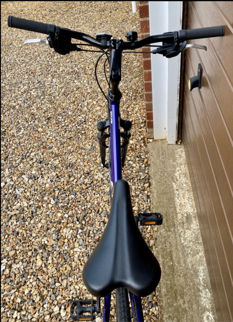 The Cross 28 inch Wheel Size Women's Hybrid Bike features adjustable handlebars, Shimano gears, and a 14-speed derailleur gear system for smooth gear changes. This purple bike has a medium frame size with a front suspension type, disc brakes, and tubular tyres for a comfortable and efficient ride. It also includes a step-through frame, adjustable seat, bottle cage, reflectors, and a bell for added convenience and safety.