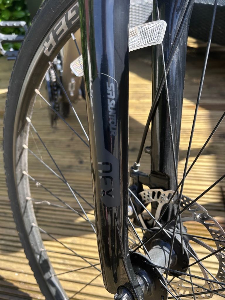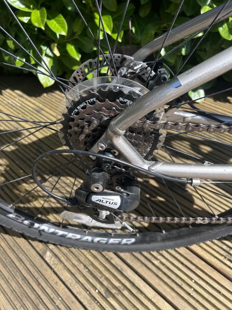 Size small. Shimano Altus group set. Mechanical disc brakes. 3X7 gears. Bontraeger tyres in great condition. SR Suntour NEX spring fork. Really good condition.