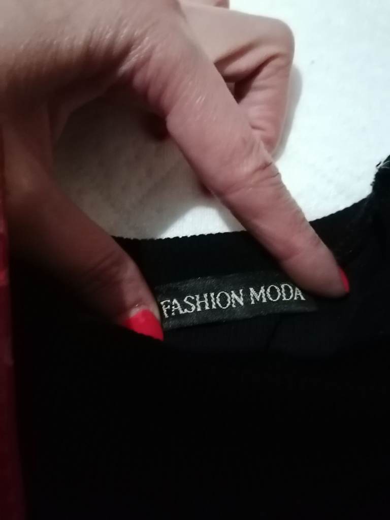 New women's blouse. The colour is black. The size is one size. The brand is Fashion Moda. Just tried it on.