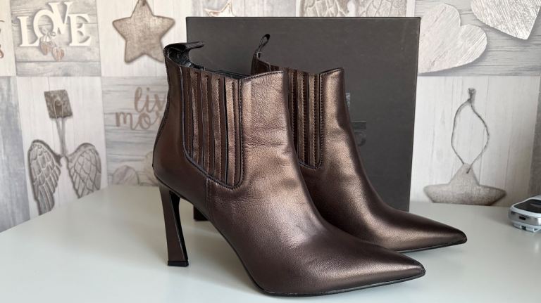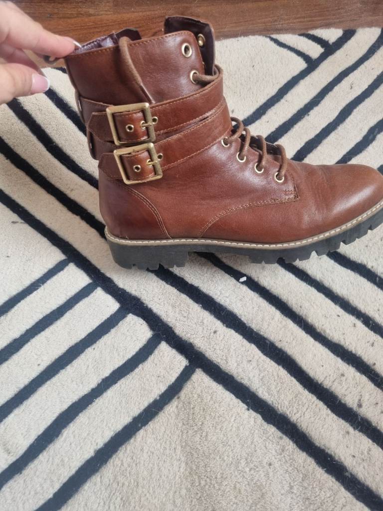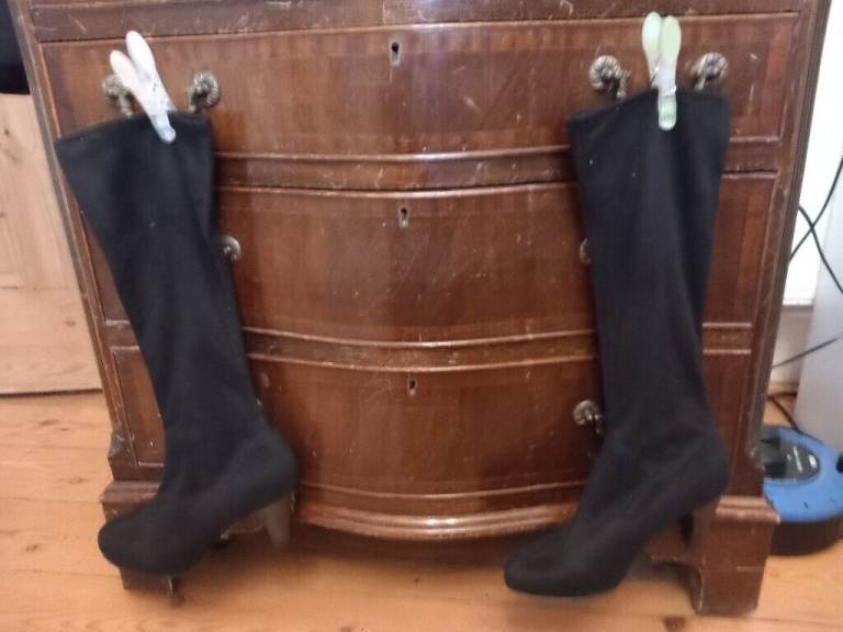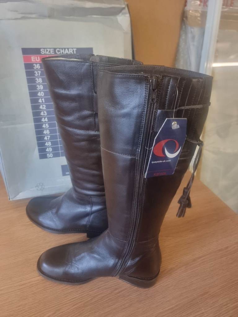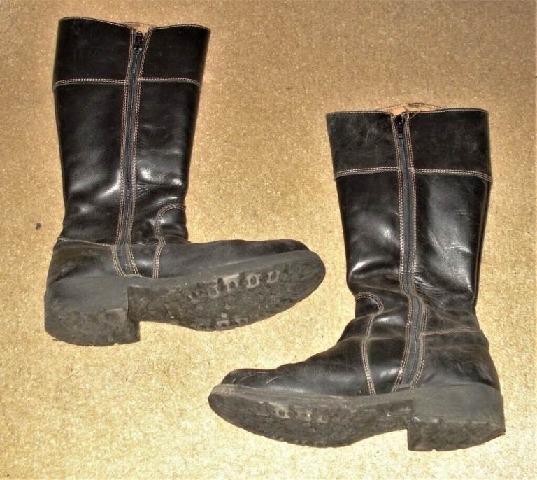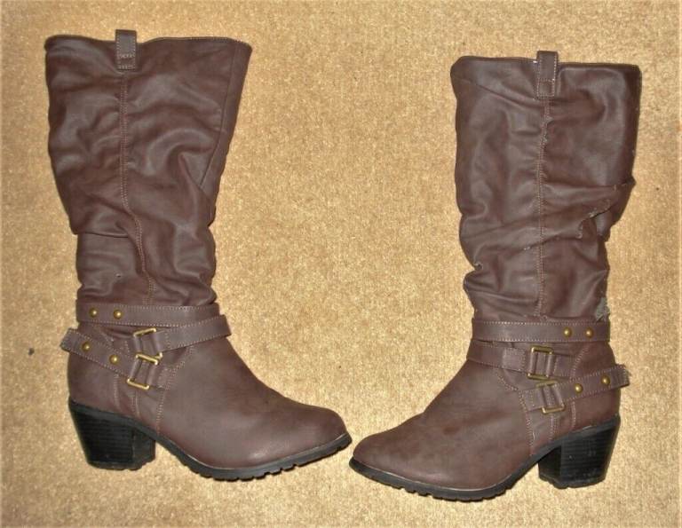 Images 1 & 2 are leather, size UK 5 (38), brown with zip, 6 cm heels, gold studs & fur lined. Length of boots: 39 cm including heels.