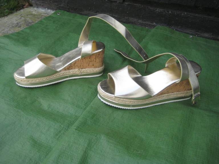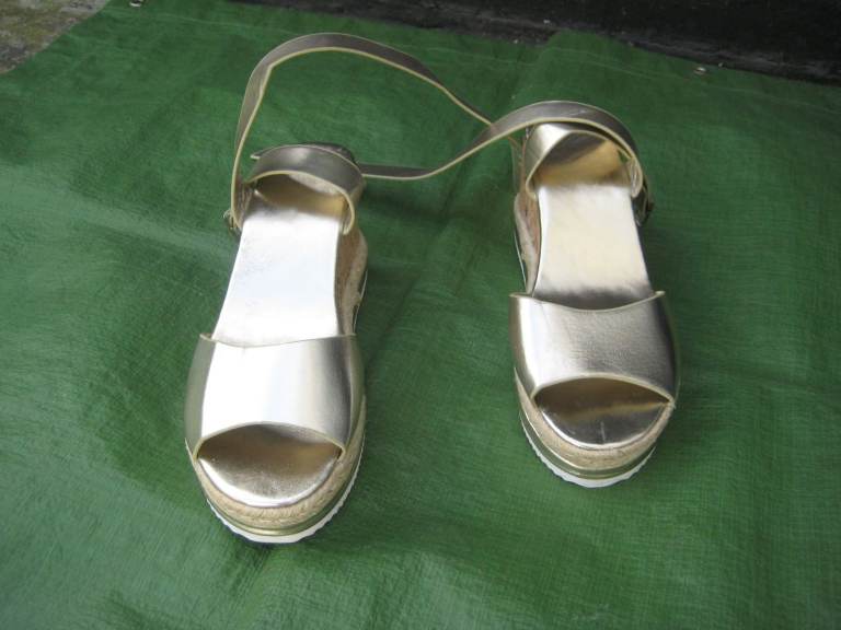 2.Gold Coloured Wedge Heeled Sandals UK Size 6.5/Euro Size 40 for £3.00