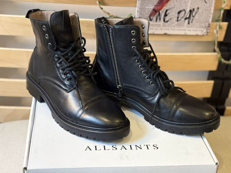 Brand new ALLSAINTS Piero lace-up ankle boots in black leather, never worn, with original tags.