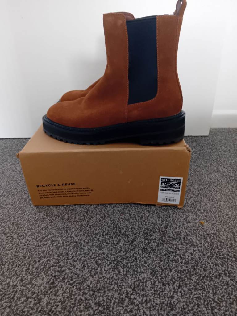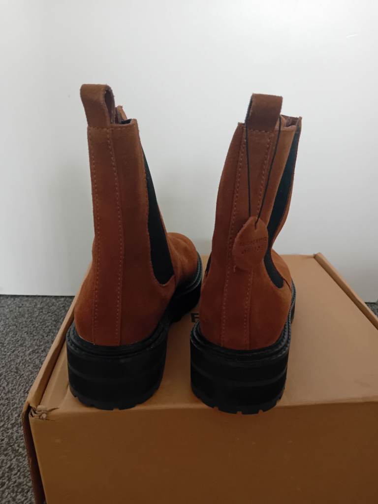 Office ankle height boots pull on style in suede.never worn .boxed.brown colour size 6