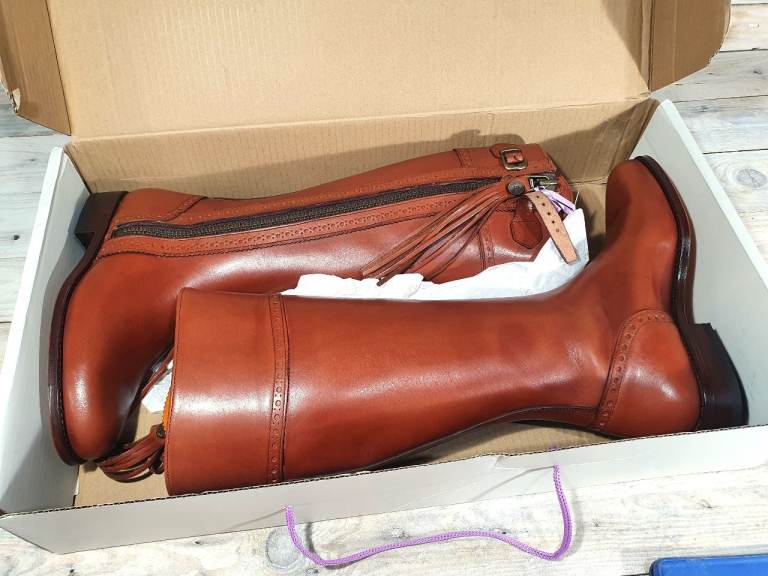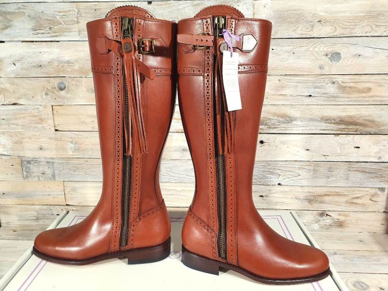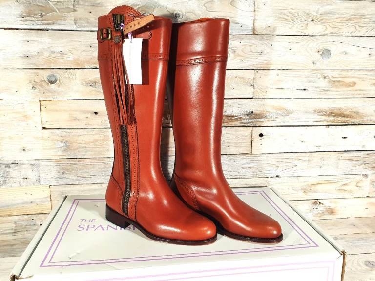 Designer High End Tan Real Leather Boots by The Spanish Boot Company - Size UK 4