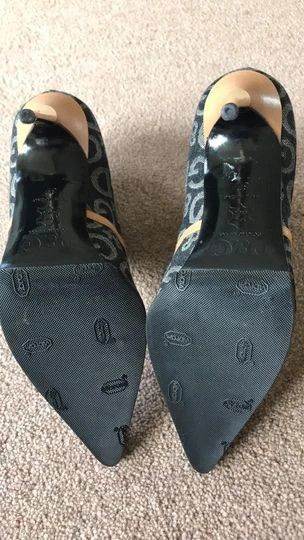 Leather, elasticated sides, stiletto heel. Excellent condition, as new. Good quality material.