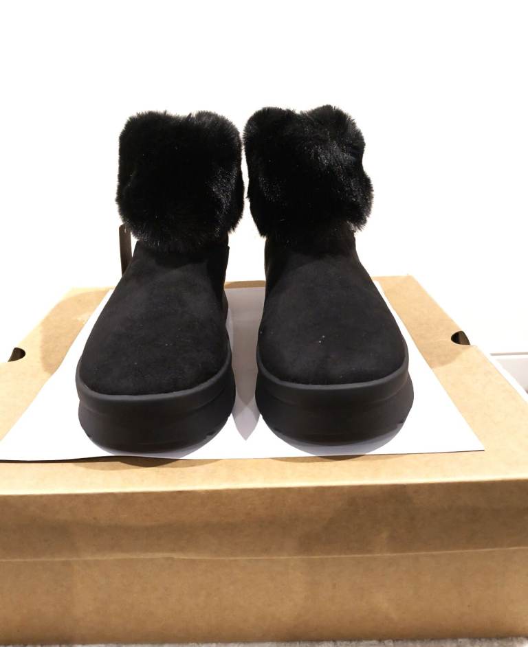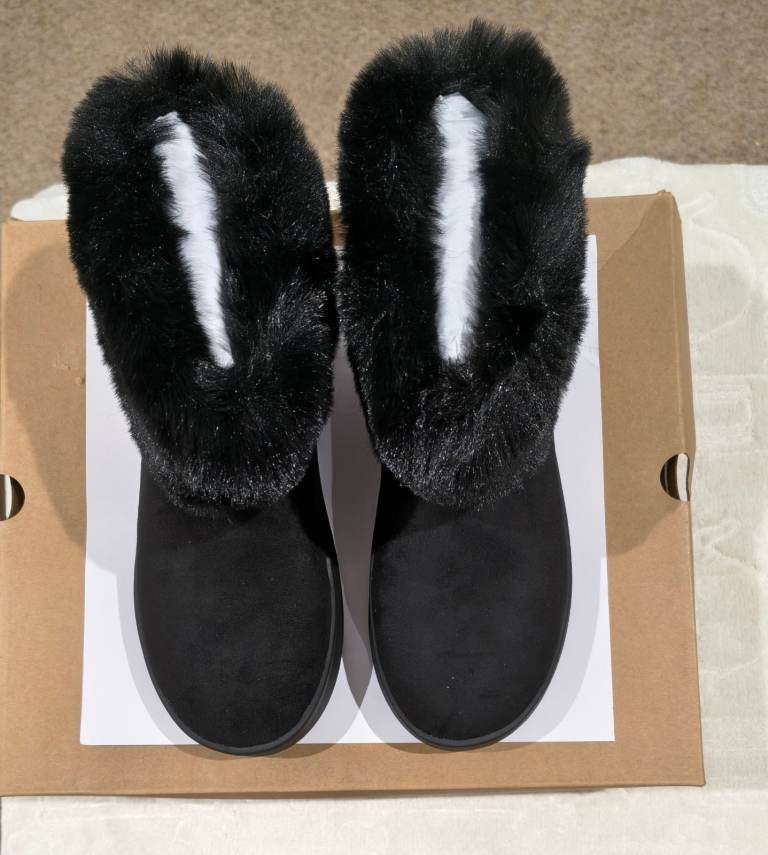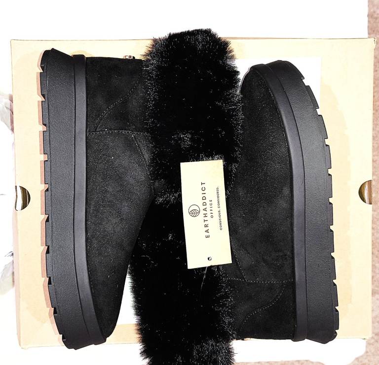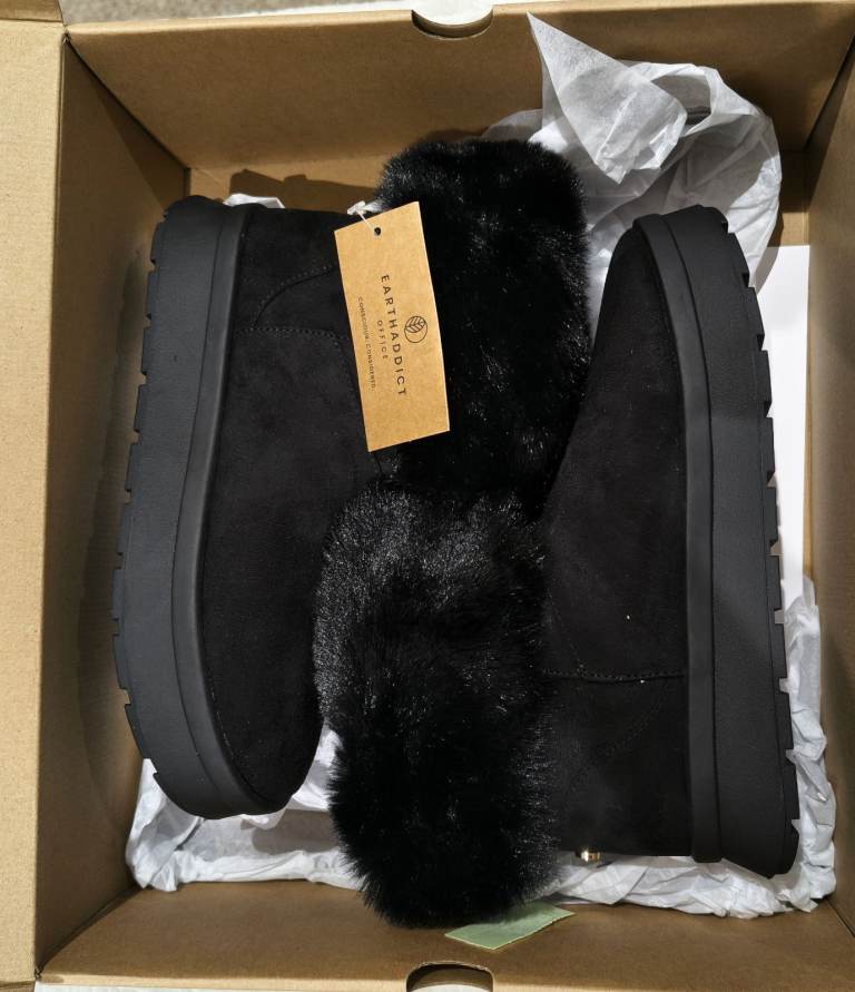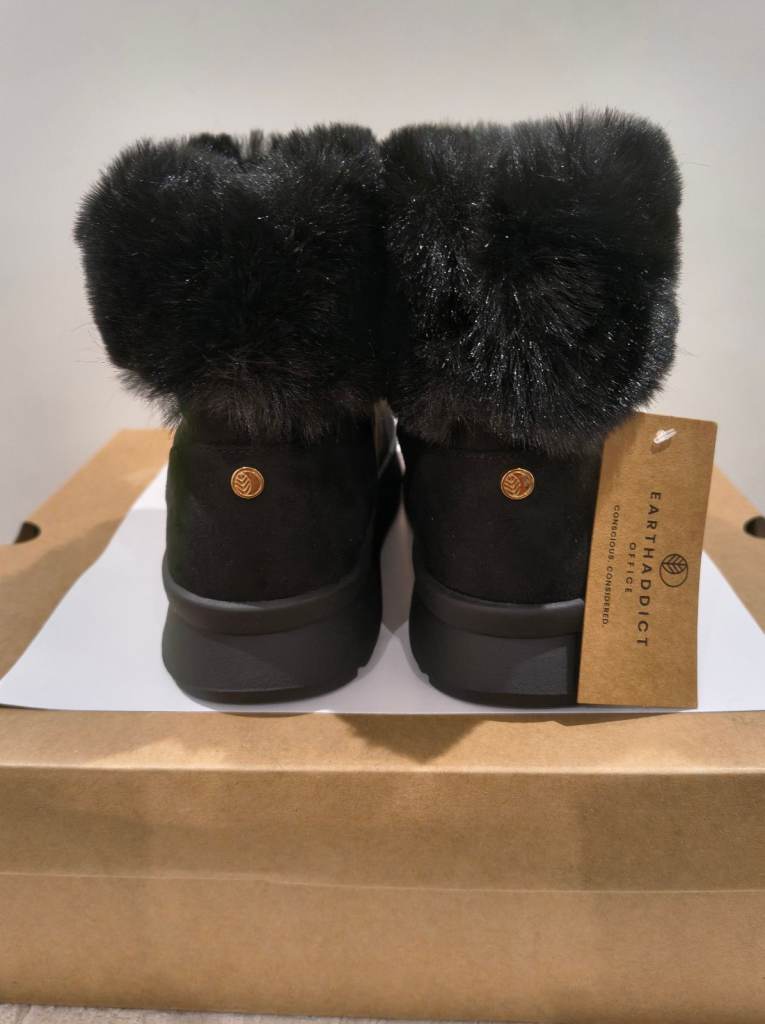 Earth Addict Black Faux Fur Ankle Boots | UK 4.5 | Brand New | Boxed | Cozy Boots