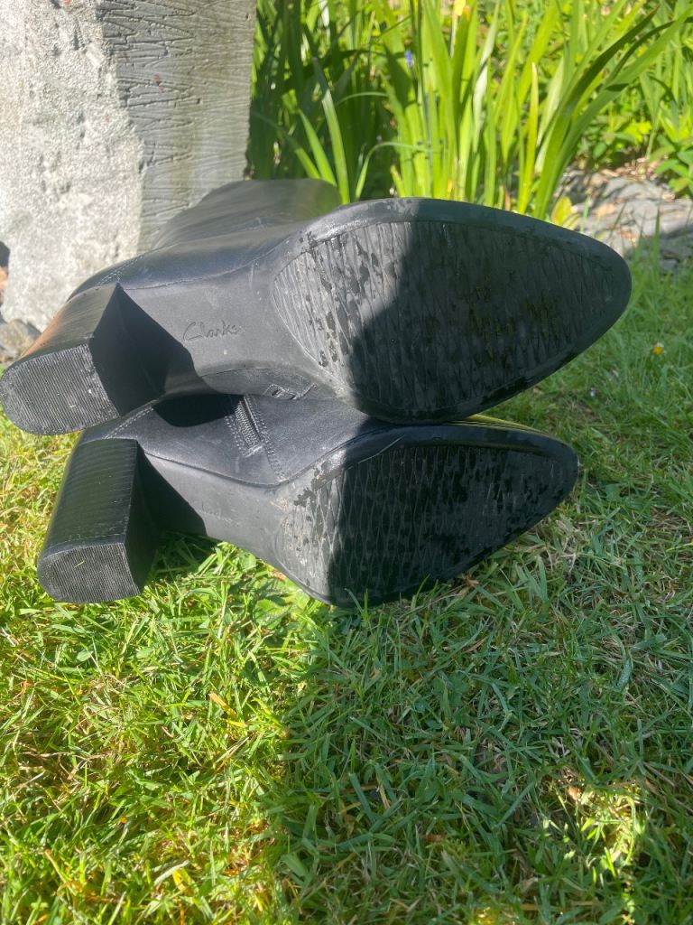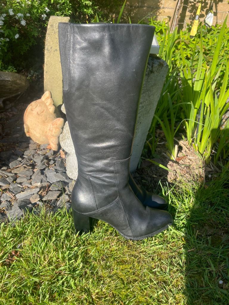 These are a pair of Clarks black knee-high boots, women's UK size 7.