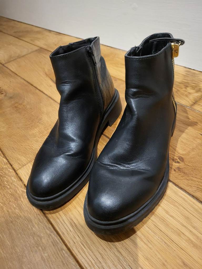 Size 4 black leather ankle boots crocodile skin effect on ankle gold zip detail Very comfortable. Brand 'Office'. Good condition