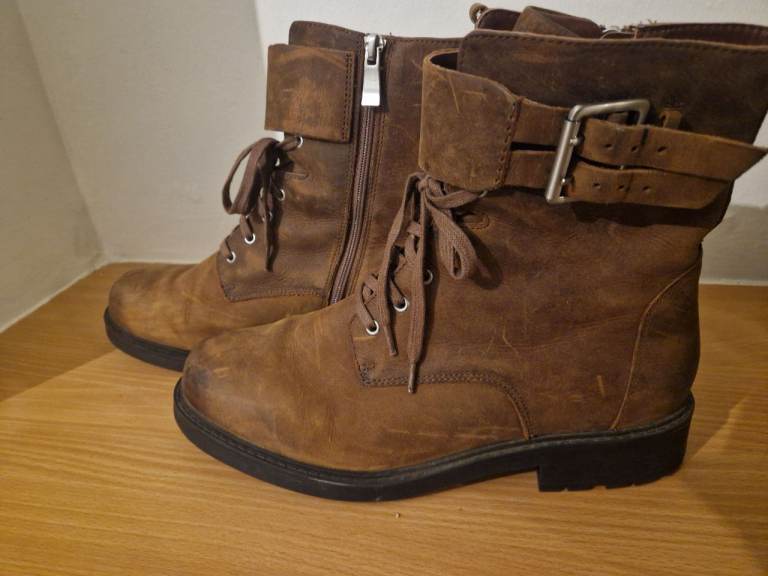 Posting for 4+ yearsLadies Clarks Orinoco 2 Brown Leather Lace Up Zip Ankle Boots UK 8 E Wide Fit