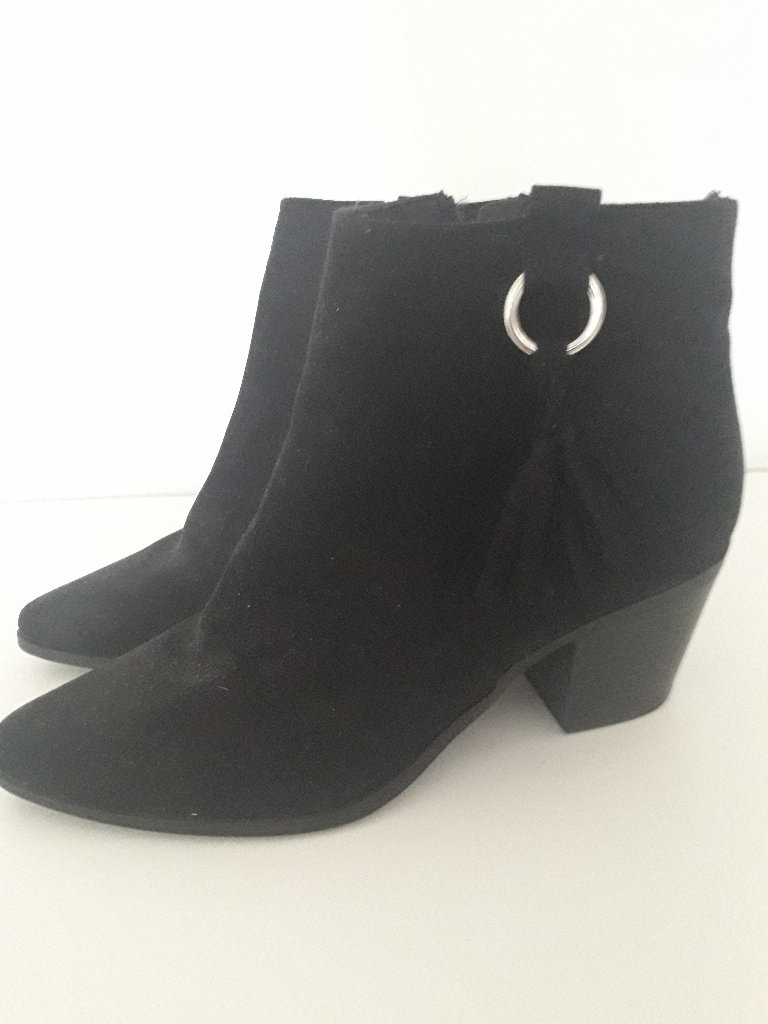 Ladies black suede Boots, side zip size 6 new condition. Can deliver to you