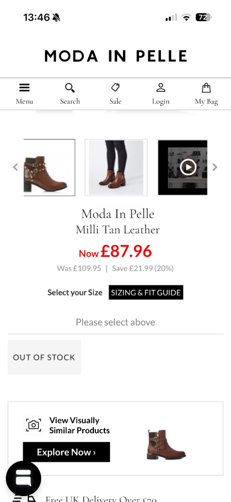 Selling for over £86 on Moda in Pelle website sale