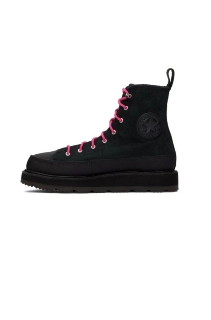 Elevate your casual look with these black leather sneaker boots from Converse. The high top Chuck Taylor All Star design features a comfortable fabric insole and lace-up closure for a secure fit. Perfect for winter and spring, the rubber outsole provides traction on slippery surfaces.