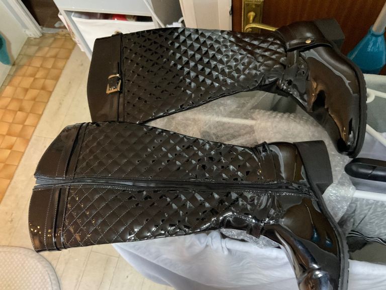 I received wrong size, unable to return, reason for sale. They are beautiful. Zip up side. Condition is new, only tried on, no box. Please collect west moors. Collection only.