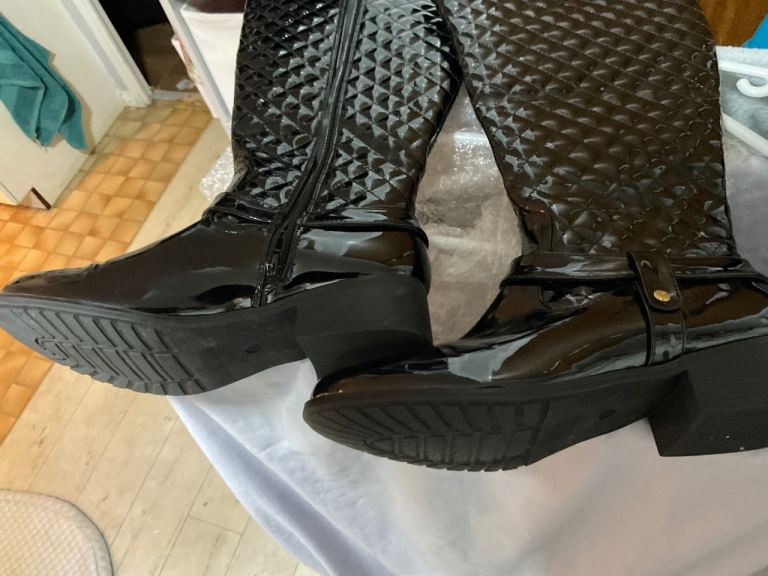 Patent black size 41/8 knee high stunning boots