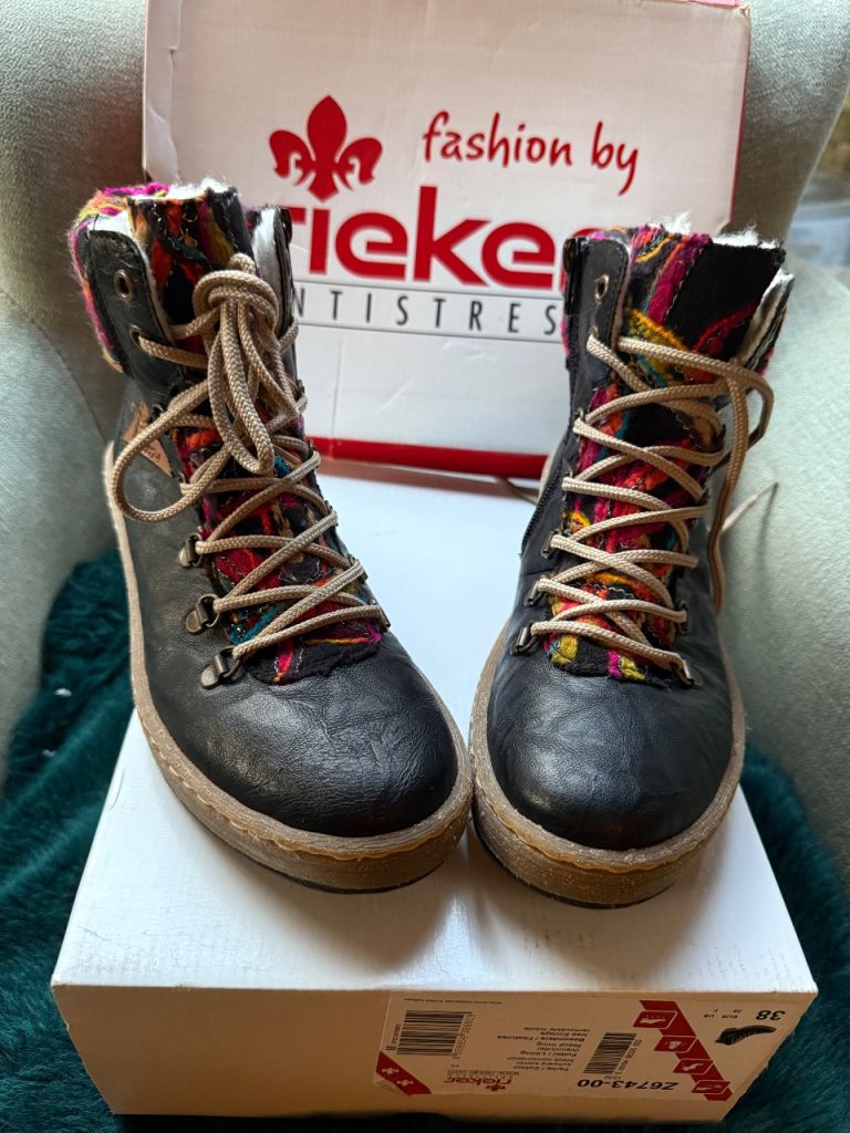 Ladies distinctive fleece lined ankle boots by Reiker. Immaculate & never worn.