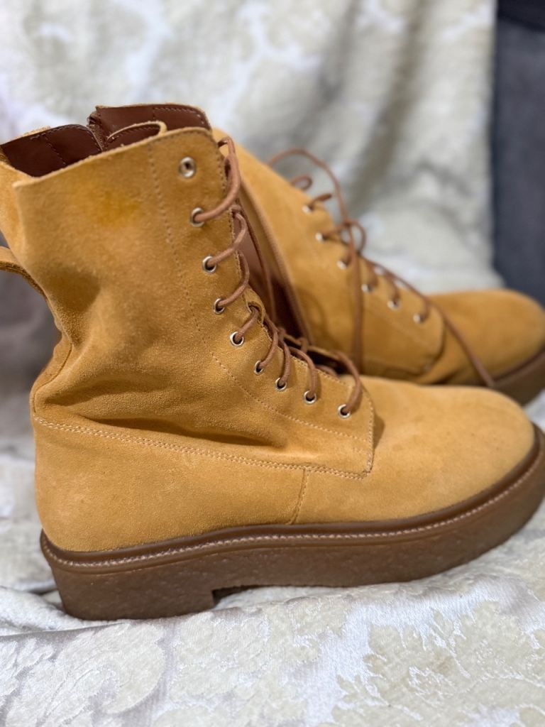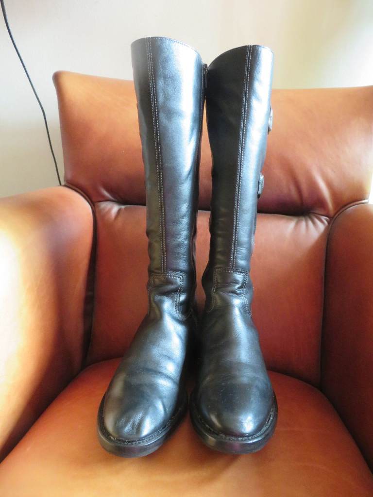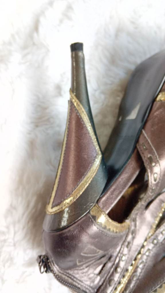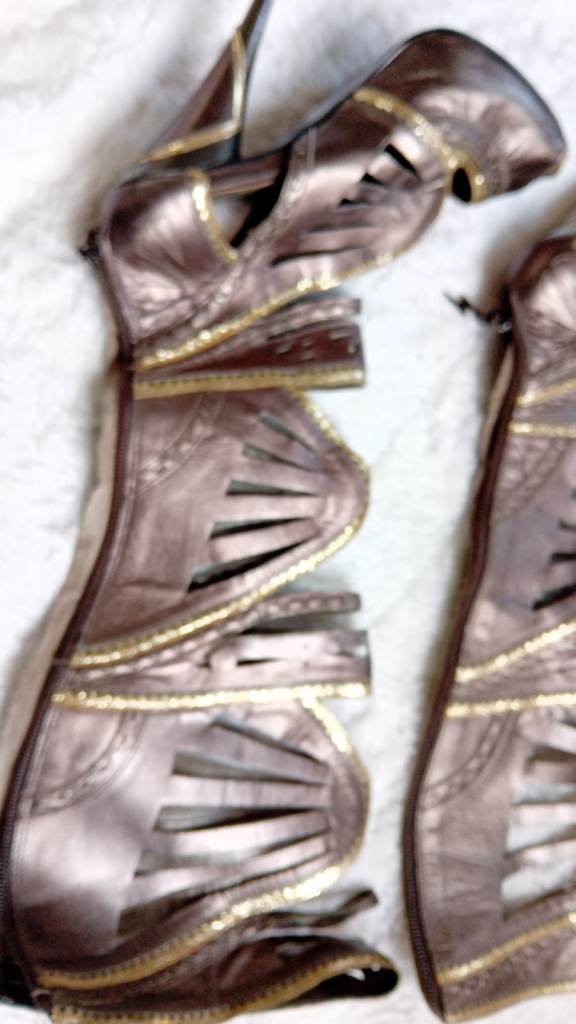 Sexy to the knee boots in light bronze and silver. Zip at the back and cut outs which adds more glamour. Heel height 4 & half inches