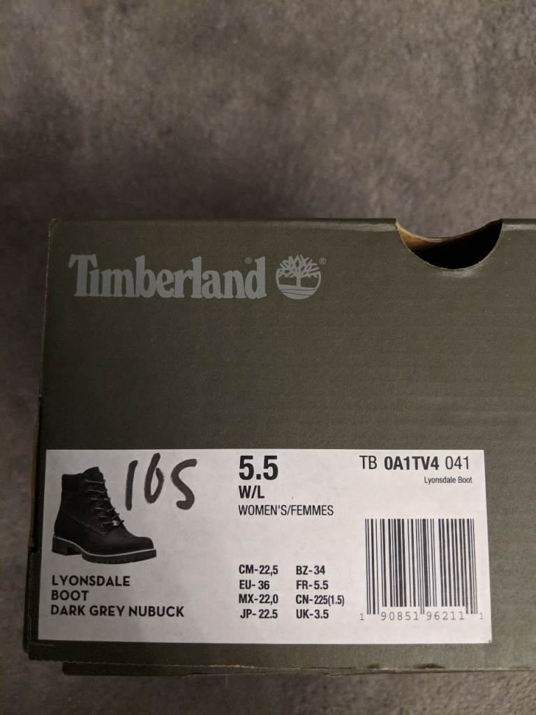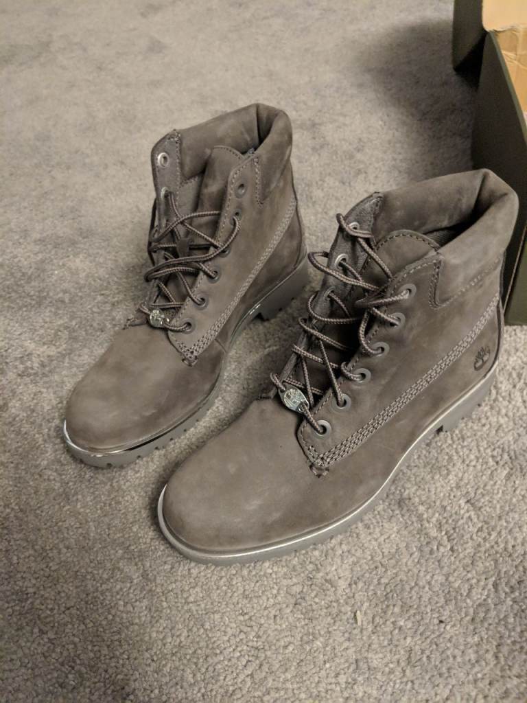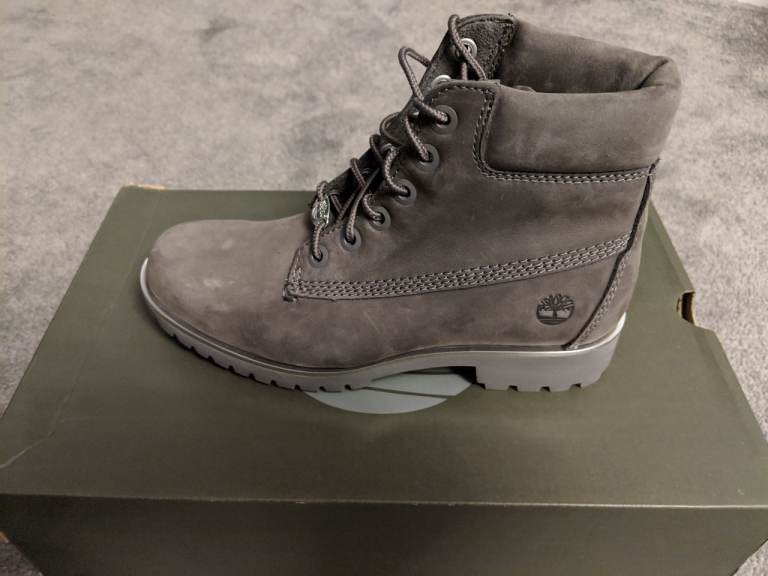 Timberland women's 6" dark grey nubuck boots. 3.5uk silver rand